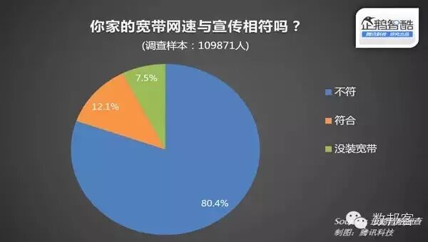 在关于网络宽带的调查中,80.4%的消费者认为自己家中宽带速度与服务商承诺的不相符合。这一比例尽管可能存在少量的情绪化和判断标准差异,但依然高到令人不安。