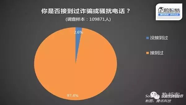 对于315晚会中曝光的电话诈骗环节,中国用户早已不胜其扰。此次企鹅智酷调查中,网民群体有97.4%的用户表示至少接到过一次诈骗或骚扰电话。
