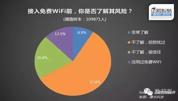 “315晚会”现场,央视展示了黑客如何通过伪装免费WiFi窃取用户信息的过程。在企鹅智酷的同步调查中,表示此前对免费WiFi的风险非常了解的用户,占比仅为8.9%。