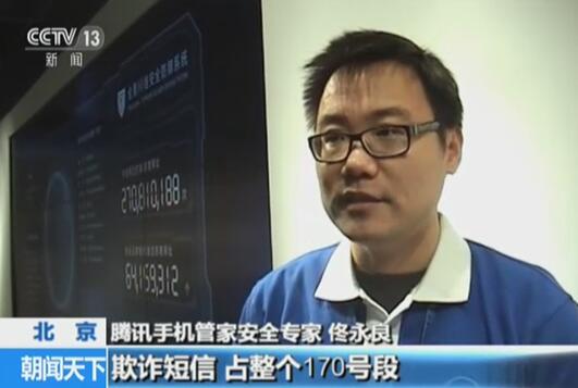 接着4月3日,央视新闻报道了《“失控”的170号段》,腾讯手机管家安全专家佟永良接受央视采访,称44%的诈骗短信通过170,171号段发送,短息内容涉及到银行汇款、赌博、发票、信用卡等热门诈骗类型。