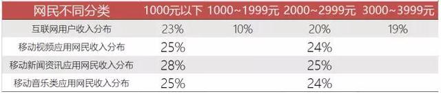 3.收入低。中国互联网用户收入统计显示,收入在1000元以下的占23%,1000~1999元的占10%,2000~2999元的占20%,3000~3999元的占19%。总结起来,就是超过一半的人月收入在3000以下。