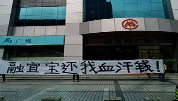 融宜宝公司里面已经是狼藉一片,被骗的投资者写下了“去坐牢”、“骗子”、“还我血行钱”等字样。