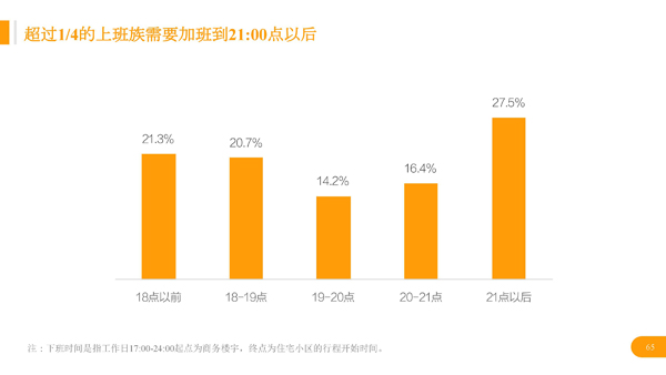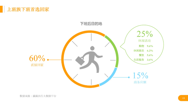 上班族下班60%选择回家,25%休闲活动,15%商务应酬。