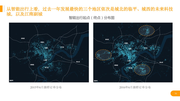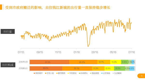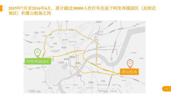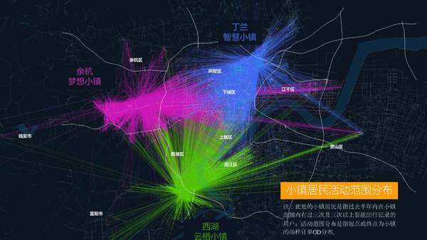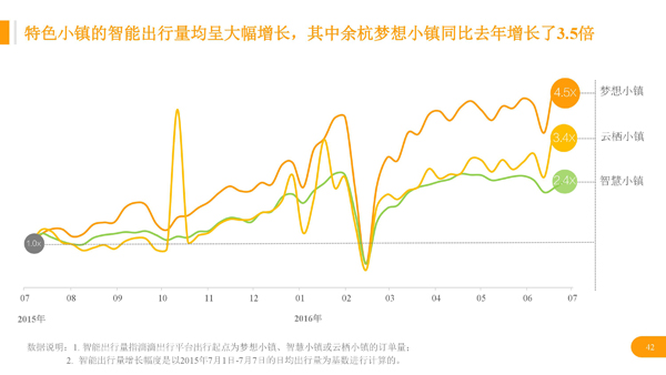 特色小镇的智能出行量均呈大幅增长,其中余杭梦想小镇同比去年增长了3.5倍。
