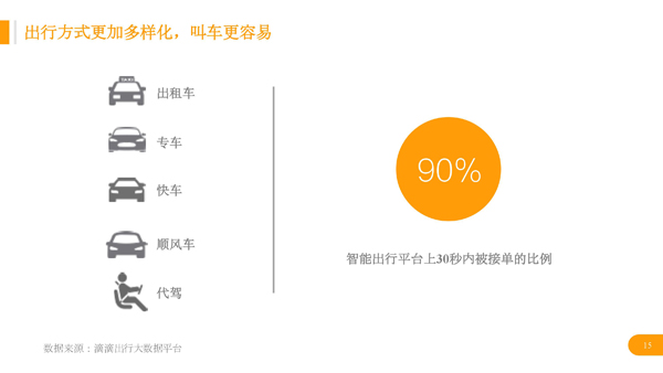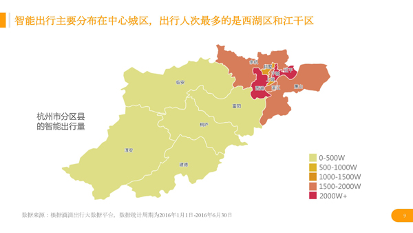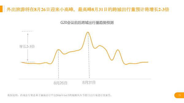 7月27日,滴滴出行对外发布了《智能出行大数据报告:杭州篇》(以下简称《报告》)。作为互联网之都,杭州的智能出行渗透率排在全国第一,2016年上半年的快车出行总人次达到了1.3亿。相较于一年前,杭州工作日早晚高峰的拥堵状况得到一定缓解,预计G20期间杭州总体出行量将下降22%,平均车速提速45%,峰会期间杭州人出游需求相比周末上涨80%。