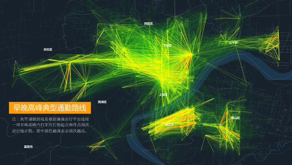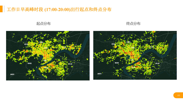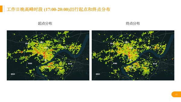 08:00-09:00是上班高峰,居住在下沙和滨江的上班族出门最早;超过1/4的上班族需要加班到21:00点以后。