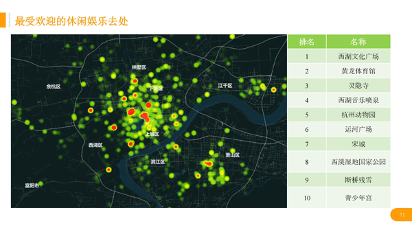 最受欢迎的休闲娱乐去处,西湖文化广场、黄龙体育馆和灵隐寺。