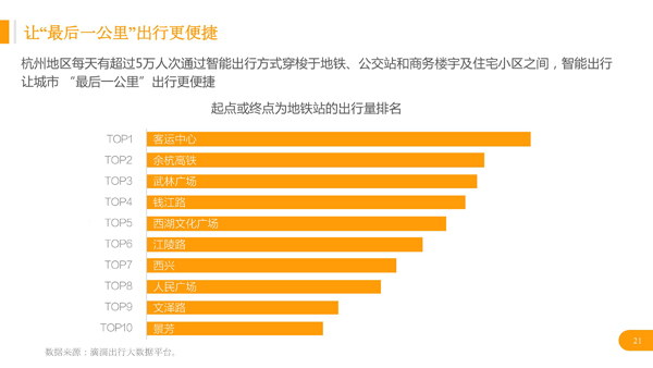 起点或终点为地铁站的出行量排行,客运中心第一。