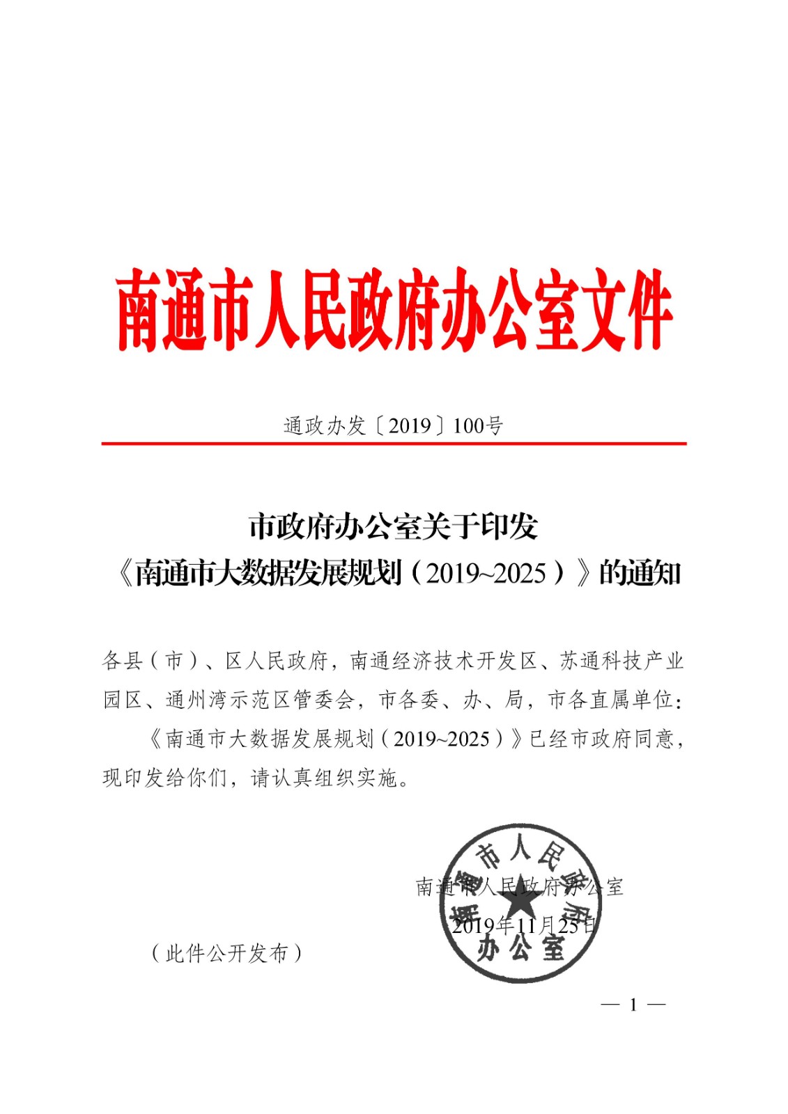 为加强顶层设计,统筹推进全市大数据发展和智慧城市的建设,指导各区各部门按照“全市一盘棋”开展工作,南通市大数据管理局研究起草了《南通市大数据发展规划(2019-2025)》(以下简称“《规划》”),现就《规划》内容作简要解读。