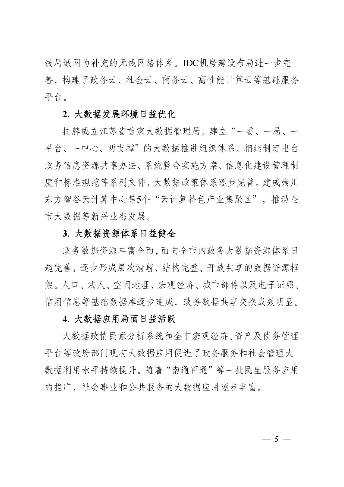 第一部分:发展背景。系统梳理了南通大数据建设的发展基础,面临的形势,总结南通大数据建设成绩和存在不足,为发展规划和行动纲要提供基础支撑。