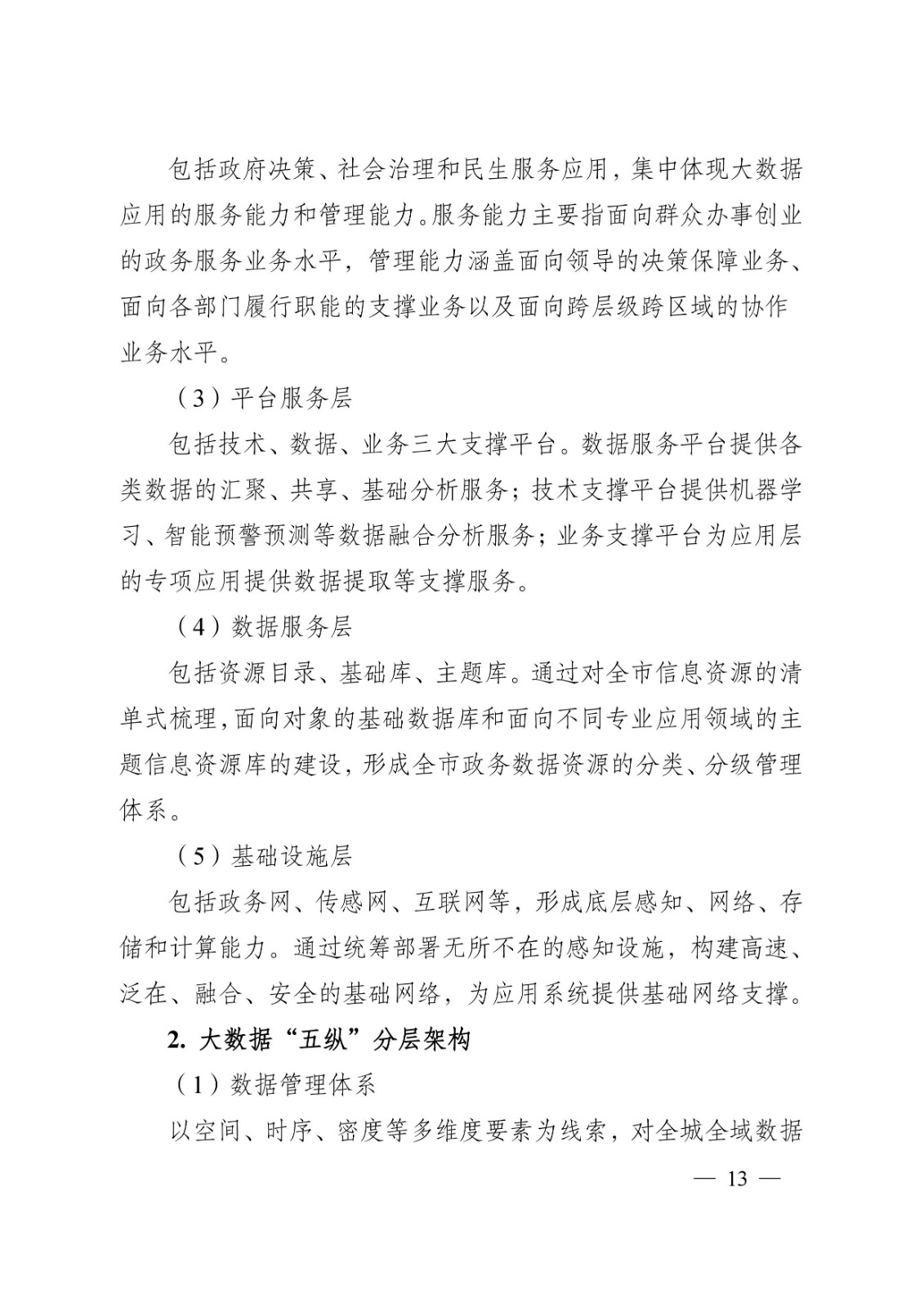 “五横”分别是运营展示层、应用服务层、平台服务层、数据服务层和基础设施层,“五纵”分别是数据管理体系、组织管理体系、运维支撑体系、网络安全体系和标准规范体系。