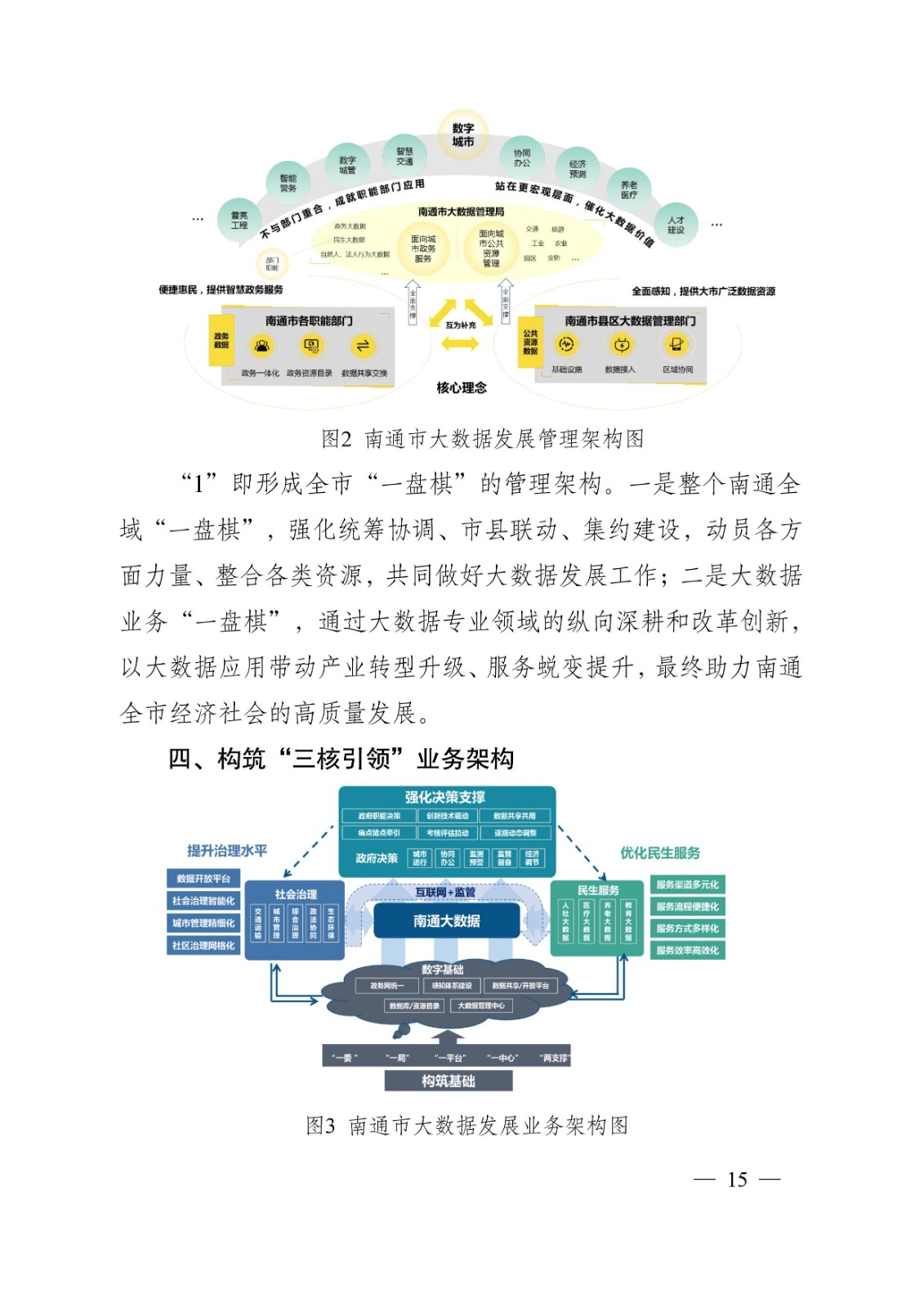 一是整个南通全域“一盘棋”,强化统筹协调、市区联动、集约建设,动员各方面力量、整合各类资源,共同做好大数据发展工作;二是大数据业务“一盘棋”,通过大数据专业领域的纵向深耕和改革创新,以大数据应用带动产业转型升级、服务蜕变提升,最终助力南通全市经济社会的高质量发展。