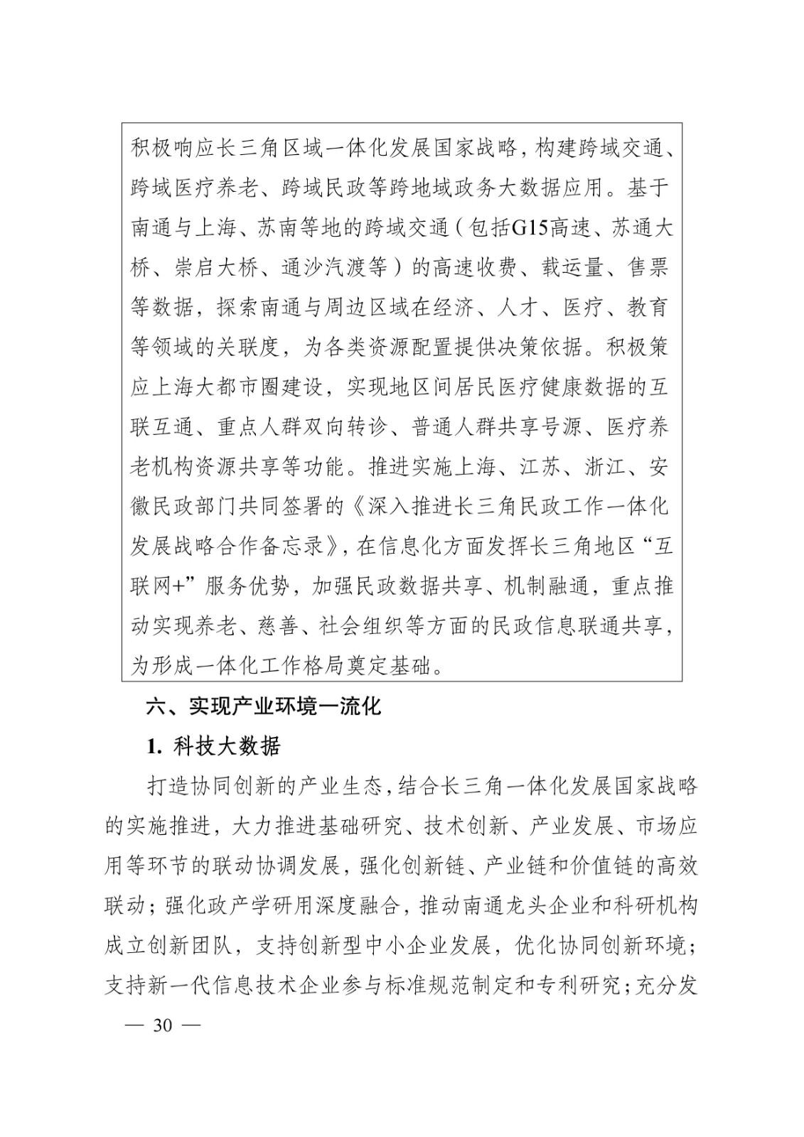 南通作为长江经济带战略支点、上海大都市圈北翼门户城市和长三角北翼经济中心,在智慧城市建设和信息化应用发展中形成了丰富经验,为大数据发展奠定了坚实的发展基础。南通应抢抓长三角一体化发展国家战略实施的机遇,加快大数据建设,以大数据培育发展新动能,助力实现高质量发展,不断增强人民群众的获得感和幸福感。