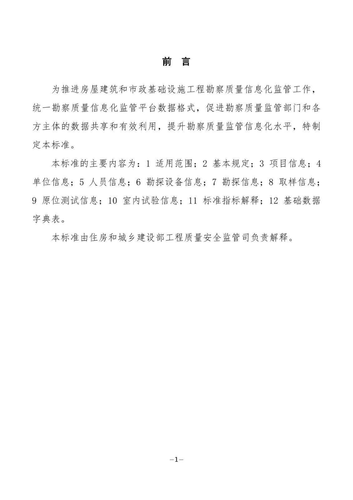 为推进房屋建筑和市政基础设施工程勘察质量信息化监管工作,统一勘察质量信息化监管平台数据格式,促进勘察质量监管部门和各方主体的数据共享和有效利用,提升勘察质量监管信息化水平,我部组织制定了《房屋建筑和市政基础设施工程勘察质量信息化监管平台数据标准(试行)》。现印发给你们,请遵照执行。