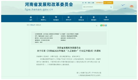 河南省2025年推进“人工智能+”行动