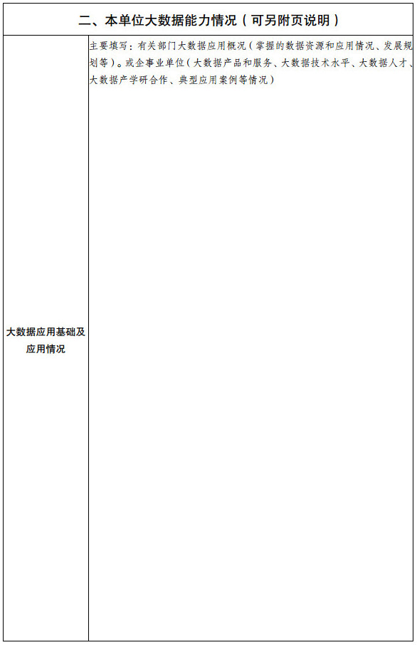 (一)项目应用单位具备大数据应用基础:大数据应用单位掌握一定规模的数据量或数据来源、有大数据运用分析能力、有能力为大数据挖掘提供具体应用。