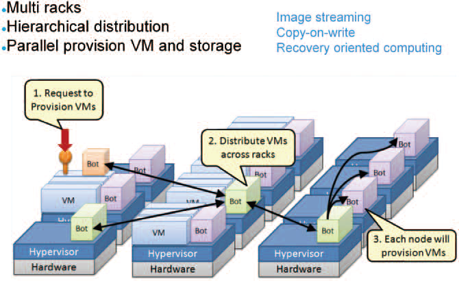 有些时候,客户只要简单的服务器及存储资源服务,对服务等级的要求比较单一,管理的功能也不要求十分复杂,这时,一个简单易用、低投资高回报、可以快速部署快速上线的云计算系统,就是最合适的选择,ISCP / SCP就是这样的选择。由于采用了最先进的虚拟机生产和追踪技术,可以在几分钟内生产出成千个虚机,当有虚拟机不能正常工作时,系统能做到无缝切换,对业务没有影响,并不需要人工干预。ISCP/SCP是新一代的云计算技术,是完全按照云计算的理念开发的产品,不是在已有IT产品上的演进,所以被称作真正的云计算解决方案,或者叫做第二代云计算解决方案。