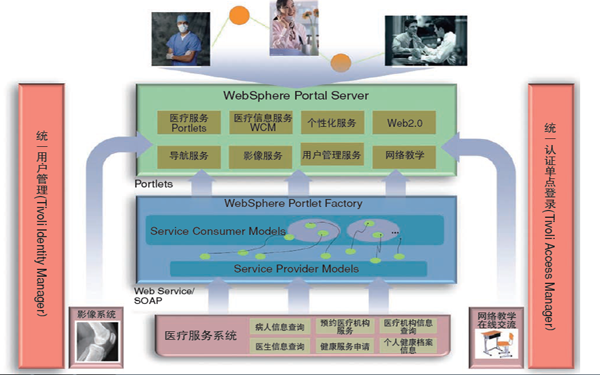 对内门户提供医疗机构内部协作使用,对外门户提供对外宣传及服务,无线门户可以将我们的服务扩展到社区家庭,比如上门家庭护理,采用无线设备操作各类业务系统。