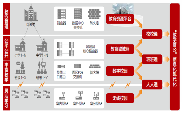 正是由于华为对基础教育行业需求和网络的深刻理解,并通过自主研发的全系列产品,向基础教育行业