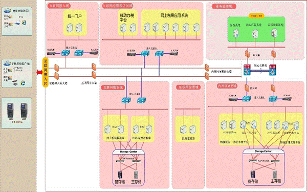 地税局网上税务系统主要存储结构分为互联网服务区以及内网服务区,其中互联网服务区主要为网上办税平台(包含移动办税)数据存储;内网服务区主要为电子档案、一体化审批平台以及渠道支撑平台数据存储。