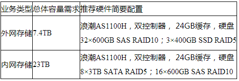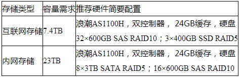 b)内网服务区存储需求分析: