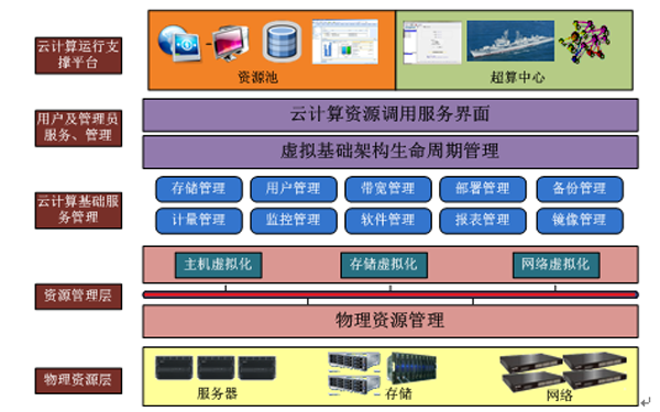 云计算数据中心可以按照客户的特定需求和应用场景提供不同应用所需的资源,通用应用可以通过资源池进行业务处理;对于仿真应用等高密集计算的应用,则可以通过超算中心进行处理。从而使云计算数据中心与客户已有软件硬件进行整合。