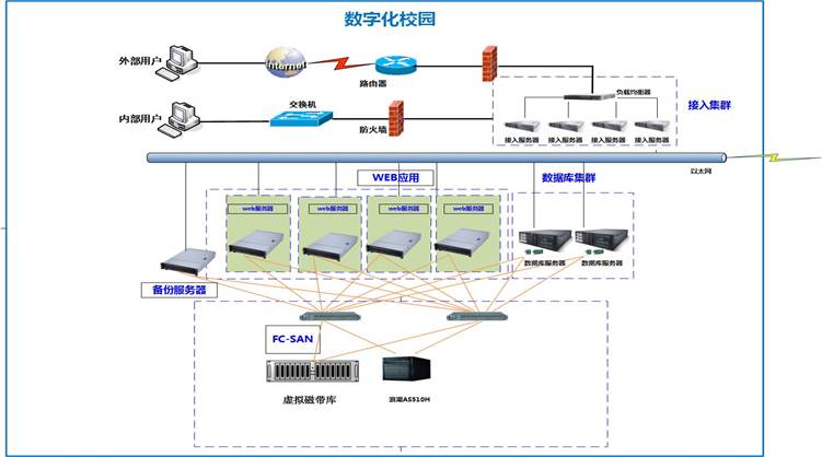 针对以上的应用,推荐采用浪潮高性能服务器NF8460M3.高端企业级存储系统AS510H等设备,以满足与国际接轨的全日制普通高等学校的管理和教学需求。为更好地满足系统的安全需求和便于管理,推荐使用防火墙系统。