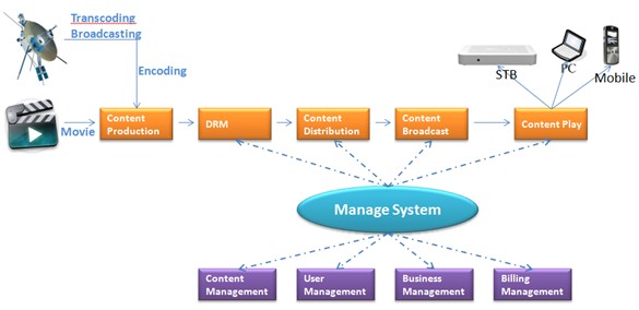 通过OTT系统的媒资系统及内容管理系统可对平台的多媒体资源进行管理和调度,平台的网管系统可对平台的设备进行管理,并支持具有角色分级权限的管理功能。OTT网络管理系统对终端具备一定的管理能力。