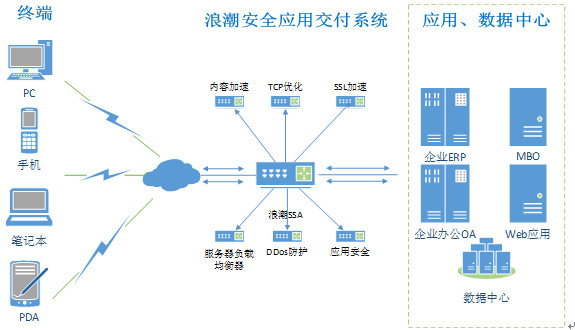 浪潮安全应用交付系统(简称“浪潮SSA”)系列产品是浪潮针对行业和大企业数据中心开发的新一代软硬件一体产品。作为企业级安全应用交付解决方案,该产品致力于解决客户的关键应用如何高效、安全、智能、可靠地发布到用户端,有效整合负载均衡、WEB应用安全、连接优化、应用加速等技术,能够在极大地提高数据中心核心业务系统的可用性、效率和安全性的同时,降低数据中心基础设施投资成本、维护复杂度和能源消耗。