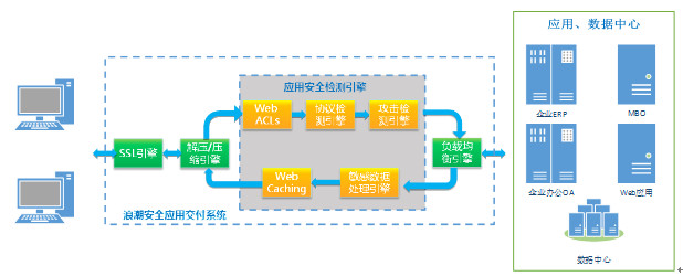 浪潮安全应用交付系统(浪潮SSA)内置安全检测引擎,为客户提供最佳的应用漏洞和未知威胁防御能力。各检测引擎独立工作,又相互协同工作,可对HTTP/HTTPS和压缩数据流进行全面的分析,极大地提高应用安全防御能力和检测效率。