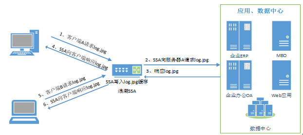 浪潮安全应用交付系统(浪潮SSA)内容缓存技术将应用服务器中的一些经常被用户访问的热点内容缓存在设备的内存中。当客户端访问这些内容时,SSA截获客户端请求,从缓存中读取客户端需要的内容并将这些内容直接返回给客户端。由于是直接从内存中读取,这种技术能够提高网络用户的访问速度,并大大减轻后端服务器的负载情况。