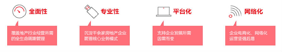 用友地产行业解决方案包括项目投资测算管理、项目盈利规划管理、项目成本管理、项目进度管理、项目资金计划管理、招标采购管理、营销管理、客服管理、基础物业管理、商业运营管理等基础业务管理模块;涉及地产企业集团管控、项目全生命周期、客户全生命周期所有管理体系及功能应用,并结合商业智能、移动办公、移动终端、电子商务等多种应用模式,按照“战略—预算—执行”的管理思路,帮助地产企业管理者对土地、资金、人、产品以及各业务流程等项目运营数据进行及时掌控和有效监管,实现财务和业务信息管理一体化,消除信息孤岛,满足集团化地产企业决策层、管理层和业务操作层的信息化需求,以高效的一体化平台支撑企业采购电子化、运营电商化、决策智能化。