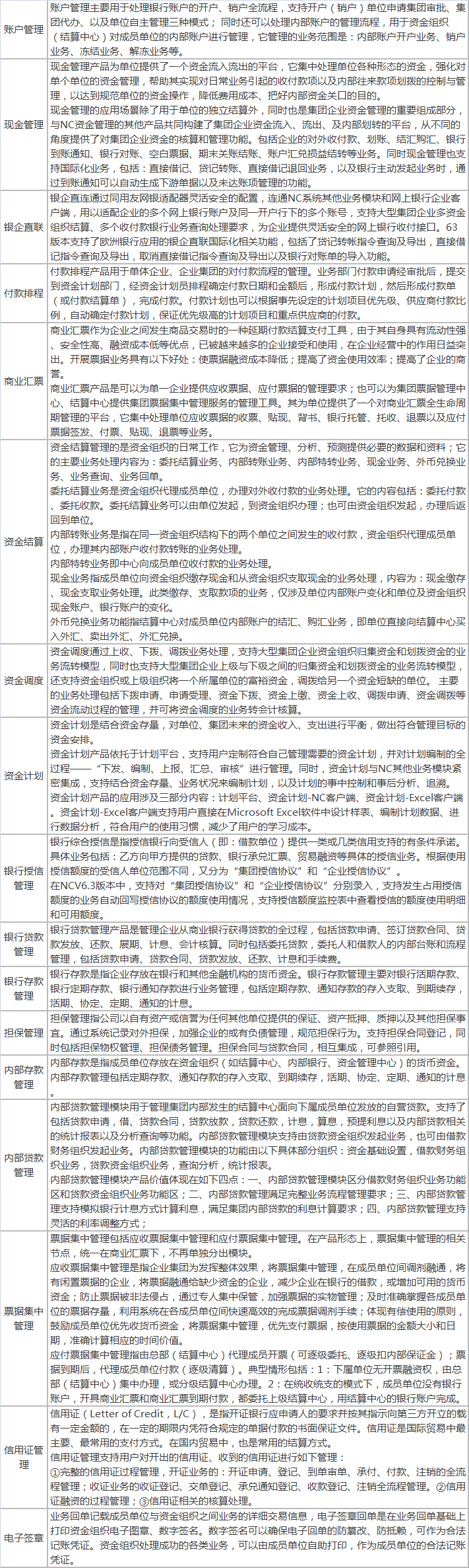 用友在资金管理领域提供的服务内容