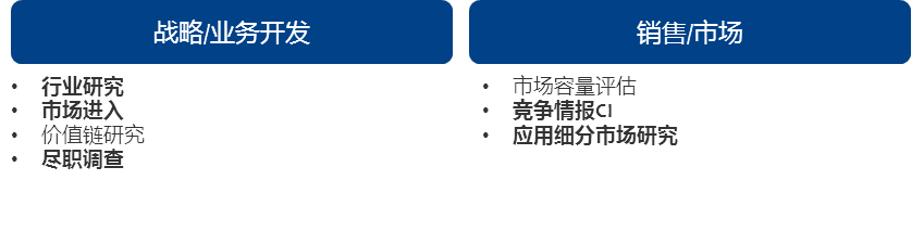 借助广泛的行业专家网络以及专注于各个行业的资深研究专家,以及22年的经验累积,助您在进入新的应用细分市场前评估市场规模,选定进入模式。