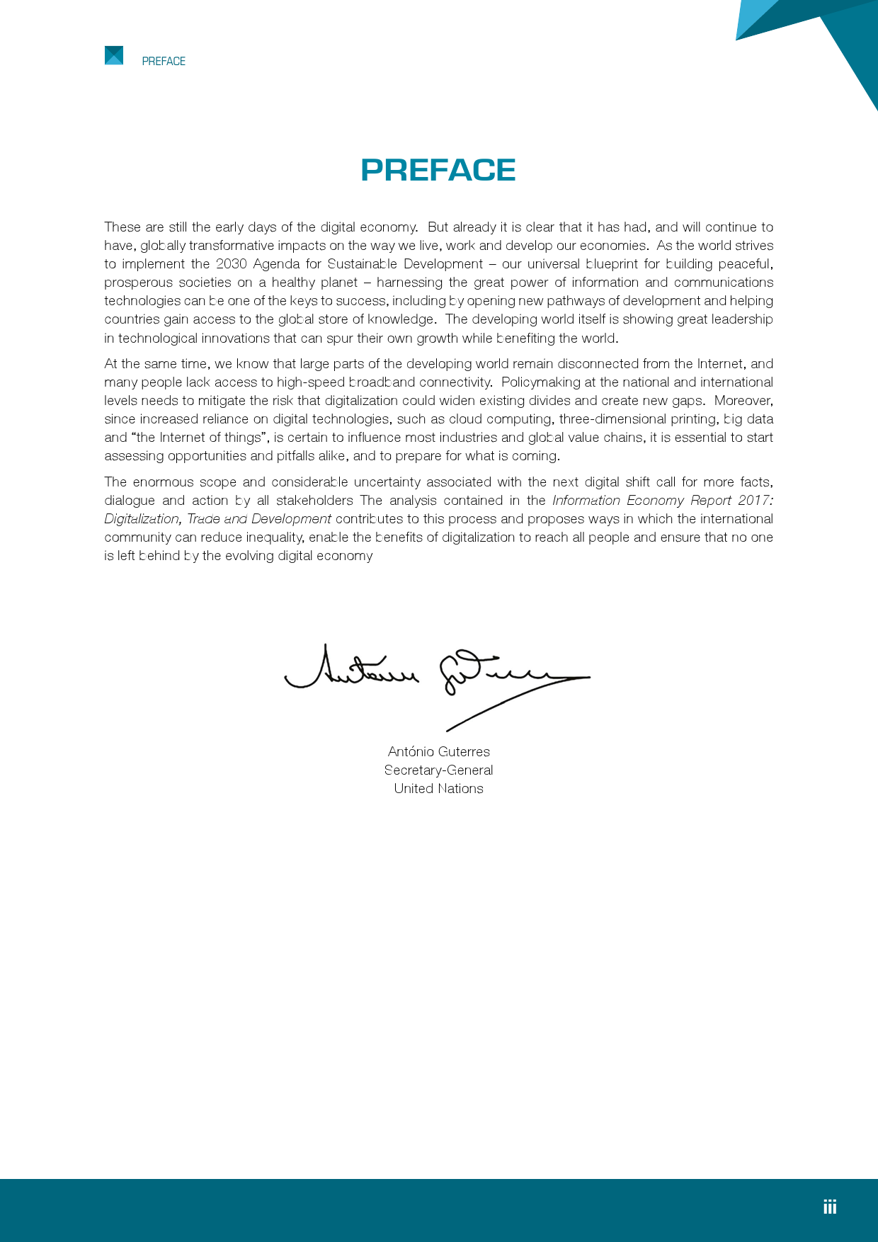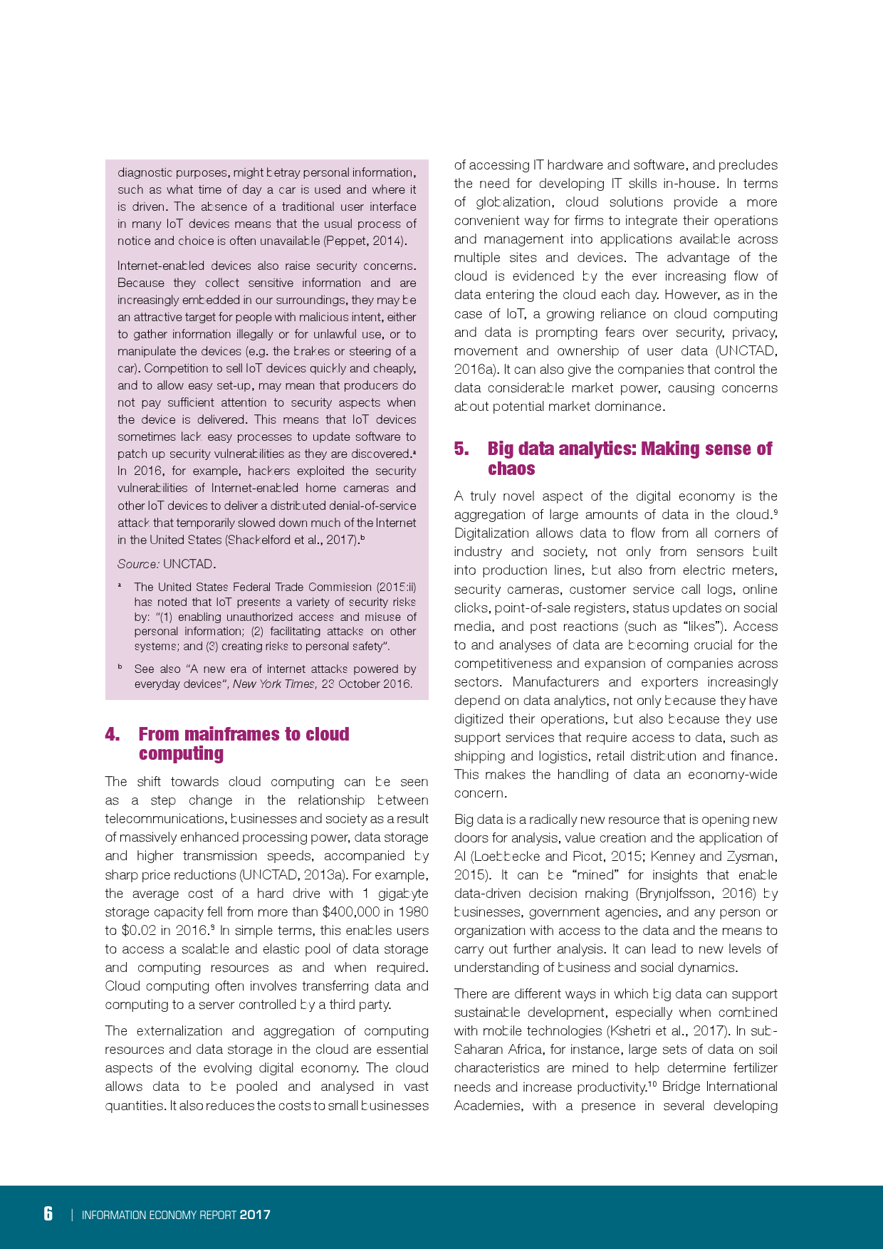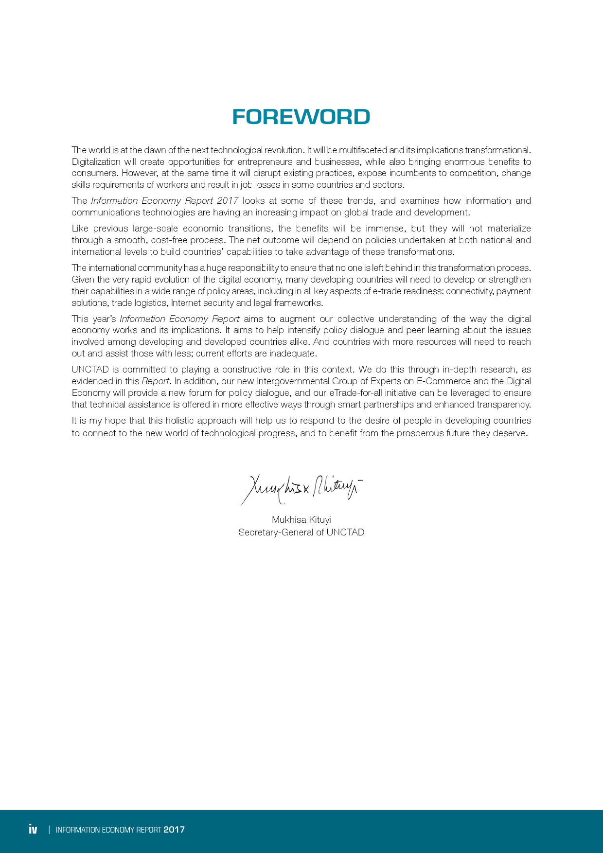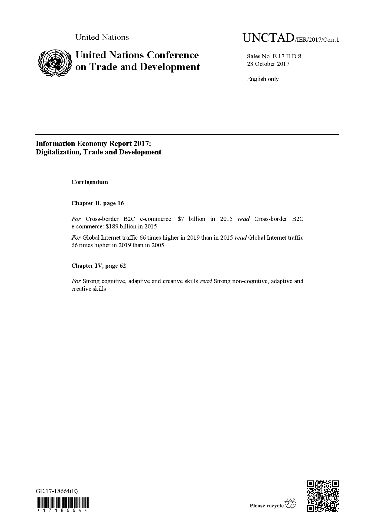 贸发会议10月2日在日内瓦发布了《2017年信息经济报告》。报告的副标题是:数字化、贸易和发展。贸发会议秘书长基图伊(Mukhisa Kituyi)出席了发布会并指出,在全球范围内,经济活动的数字化被推上了一个快速道,这得益于许多因素,包括扩大了高速宽带的接入,信息和通信技术设备和软件的成本大幅降低,例如,1GB硬盘存储容量的平均成本1980年为40万美元,而2016年降至0。02美元。
