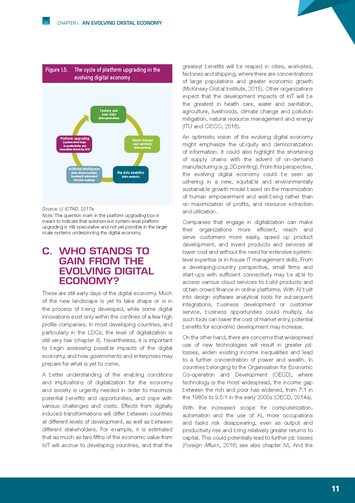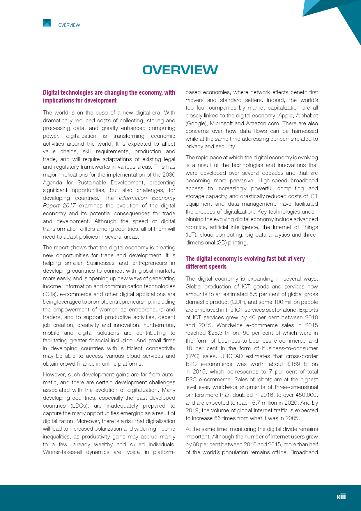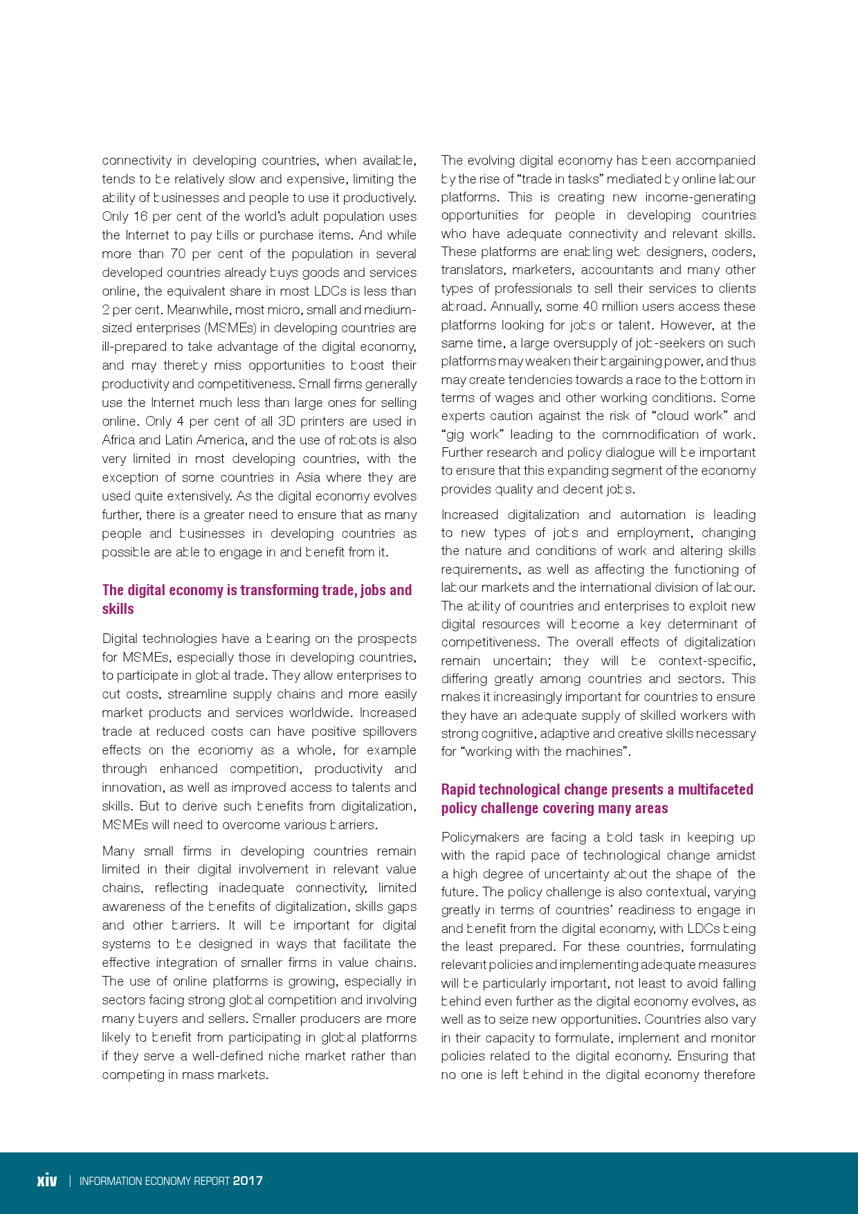 贸发会议技术和后勤司司长什米卡·斯里曼(Shimika Sirimanne)指出,在经济合作与发展组织国家,数字经济的发展最为广泛,但这一发展就明显地伴随着贫富差距的日益扩大。