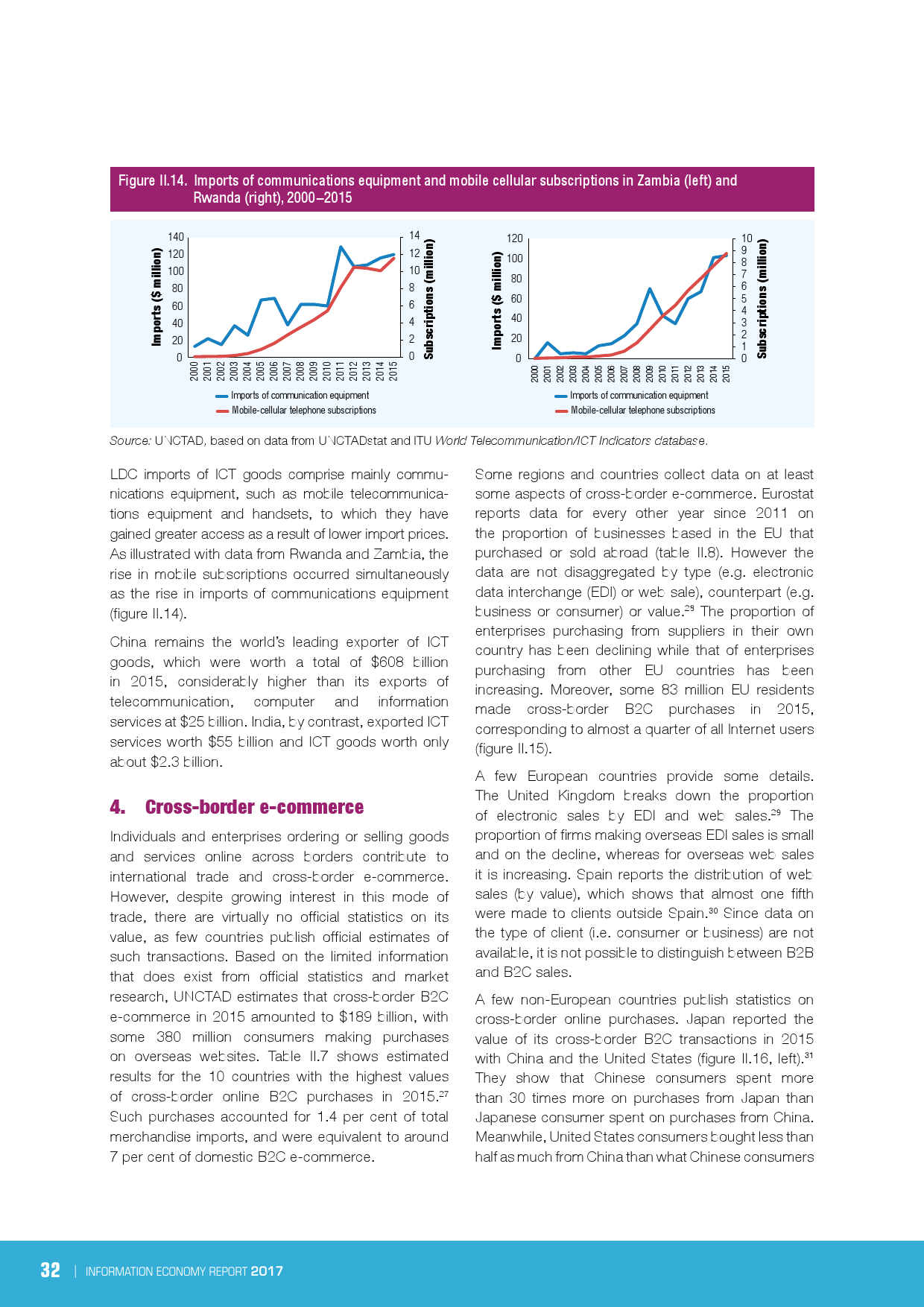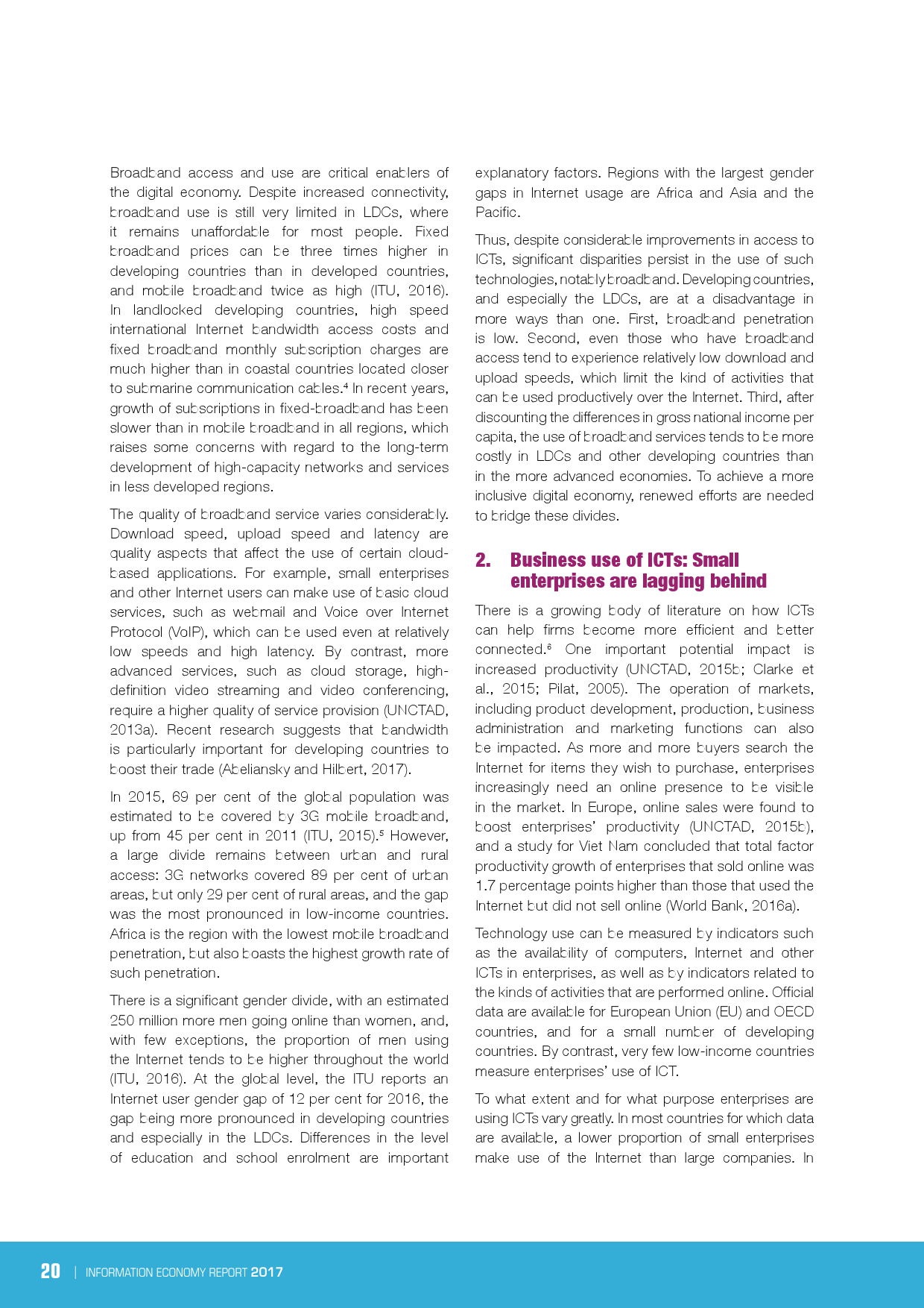 报告显示,数字经济在被称为“南方国家”的发展中国家迅速扩张。信息和通信技术、电子商务和其他数字应用正在帮助发展中国家越来越多的小企业和企业家进入全球市场,并开辟了新的创收方式。这些技术正在被利用来进行促销,尤其增强了妇女的权能,使她们更容易成为成功的企业家和贸易商。