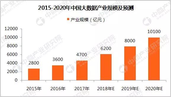 据中商产业研究院发布的《2018-2023年中国大数据产业市场前景及投资机会研究报告》,数据显示,2017年中国大数据产业规模达到4700亿元,同比增长30%;其中,大数据硬件产业的产值为234亿元,同比增长39%。随着大数据在各行业的融合应用不断深化,预计2018年中国大数据市场产值将突破6000亿元,达到6200亿元。
