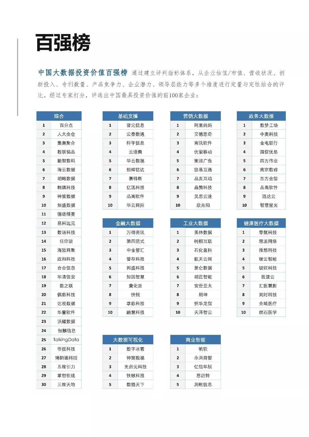 《中国大数据产业白皮书及百强榜单》从大数据整体市场方向分享了相关洞见,对大数据产业未来发展趋势进行了分析和预测。并梳理中国大数据投资价值百强榜单,总结并推举大数据与行业应用融合的典型应用场景,为全国各地数字经济的建设以及大数据产业生态的完善提供参考借鉴。