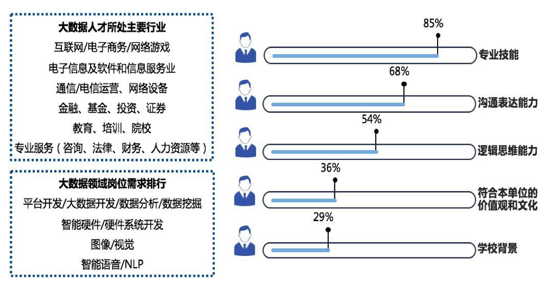 研究显示,随着SparkStrom等大数据平台应用的普及,企业对专业人才的需求日益增加,数据平台开发工程师、数据分析工程师、数据挖掘工程师等岗位炙手可热;互联网、电子信息、软件对于大数据人才需求量最大;专业知识和沟通表达能力成为企业对大数据人才聘用最重要因素。因此,大数据专业在课程设置上需注重人才的复合型知识架构,迎合市场需求和产业发展趋势。