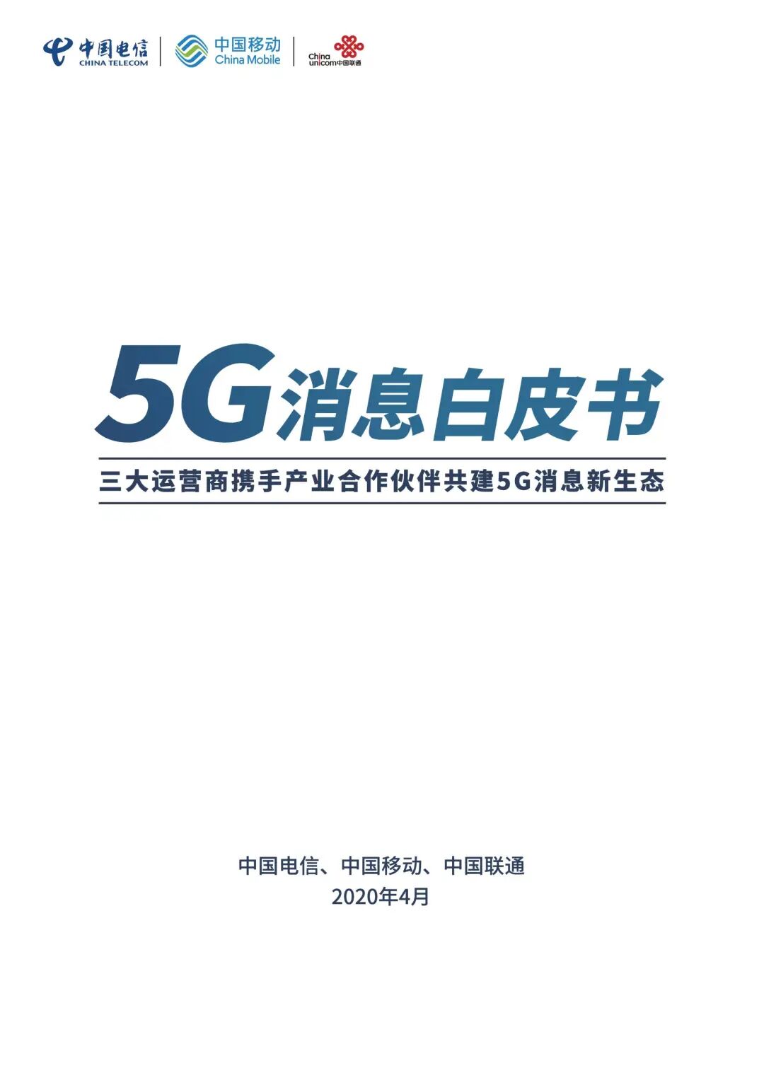 4月8日,中国电信、中国移动、中国联通联合举行线上发布会,共同发布《5G消息白皮书》。《白皮书》阐述了5G消息的核心理念,明确了相关业务功能及技术需求,提出了对5G消息生态建设的若干构想。中国电信副总经理王国权、中国移动副总经理董昕、中国联通副总经理范云军,以及来自华为、小米、vivo、OPPO、中兴、三星、联想、魅族、海信、蜂动、菊风等11家企业的代表出席发布会,共同见证5G消息业务开启新篇章。