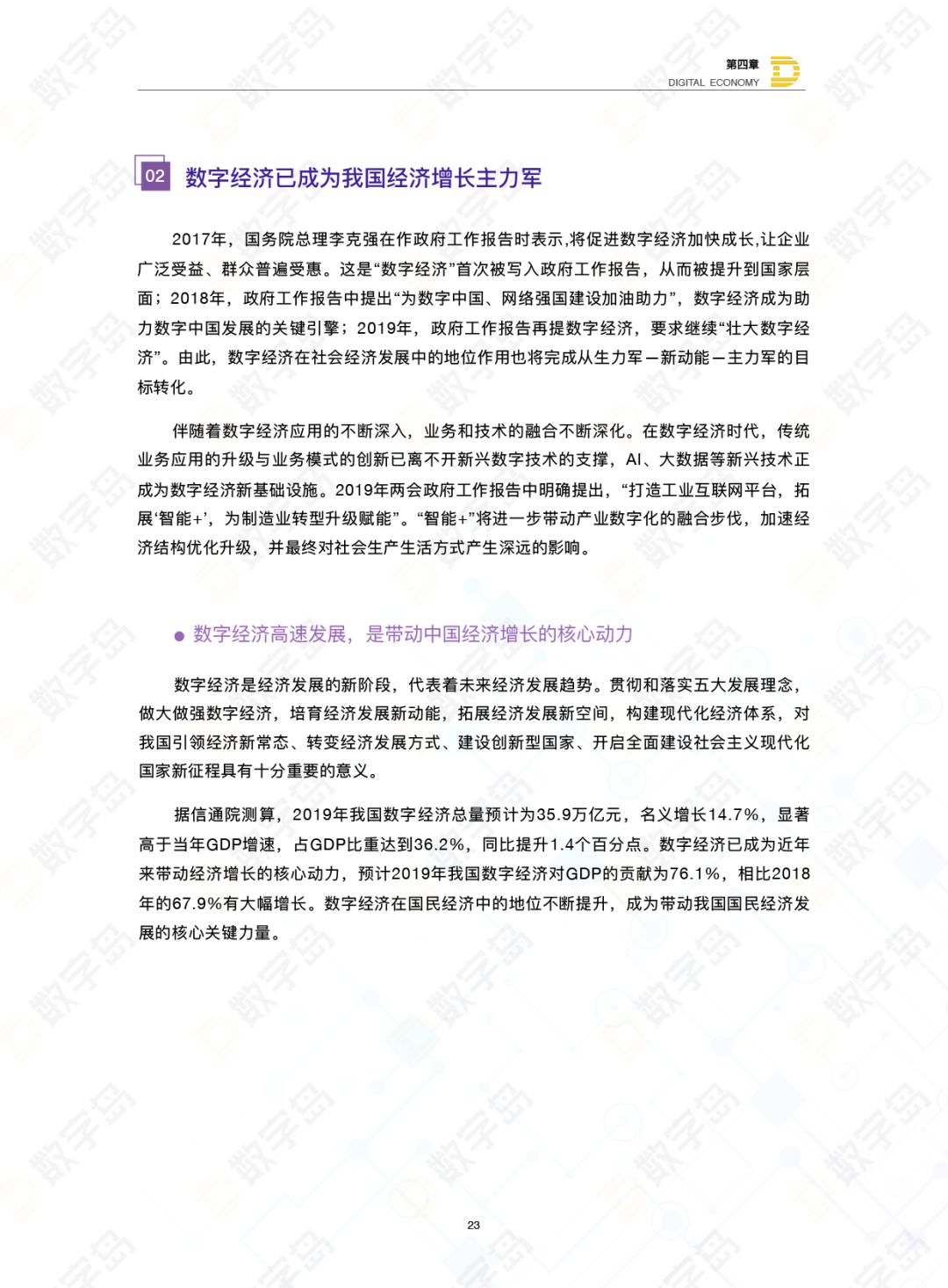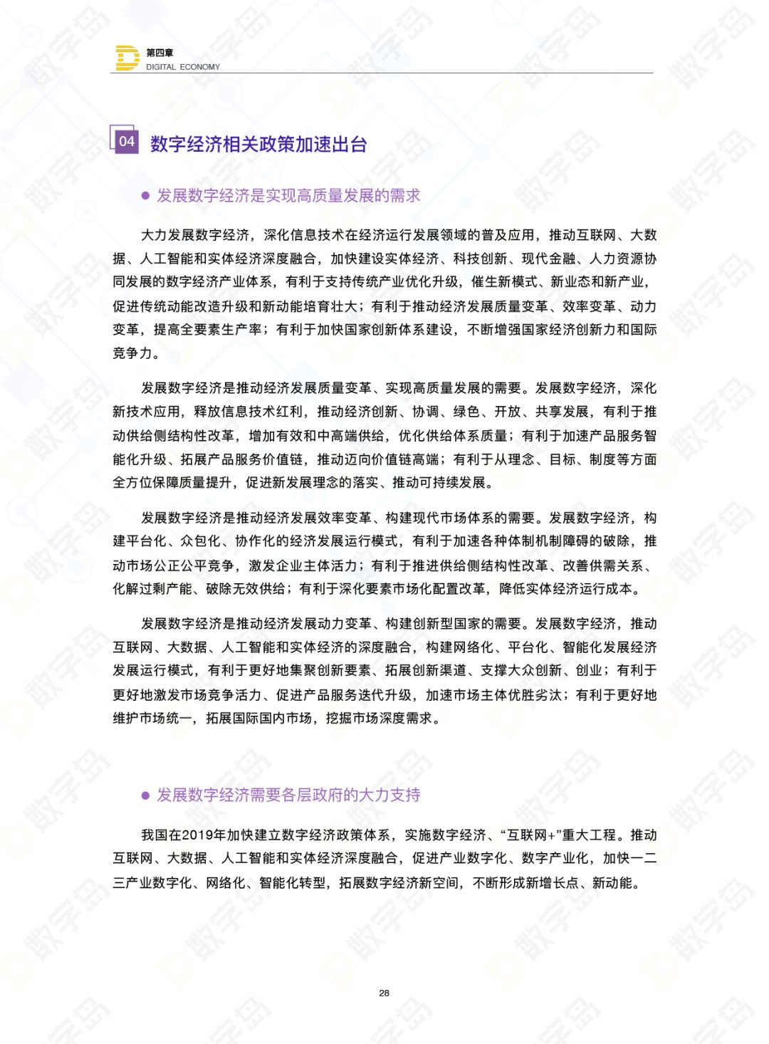 数字经济发展研究小组、中国移动通信联合会区块链专委会、数字岛研究院共同编写的《2019-2020中国城市数字经济发展报告》正式发布,该报告总计十大篇章,从国际到国内,从政策到应用,覆盖数字经济的两大分类:数字产业化及产业数字化,以城市为切入点,以国内近300个地级及以上城市为考查目标,通过五大维度,二十余个细分指标,综合考查国内城市数字经济发展现状。