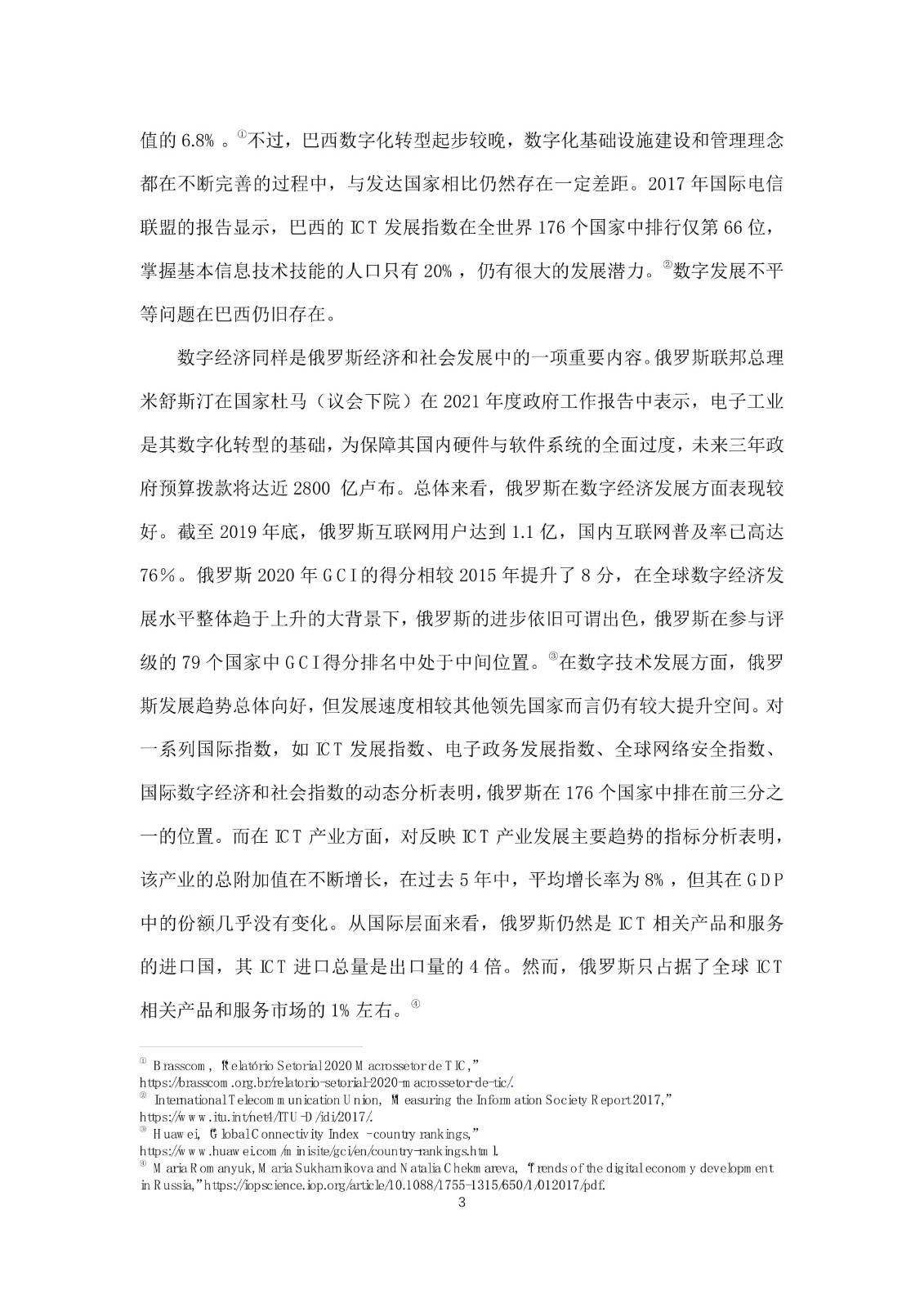 今年金砖合作的主题是“构建高质量伙伴关系,共创全球发展新时代”。当前数字经济已经成为金砖国家把握新一轮科技革命和产业创新的重要抓手,对于推动金砖国家迈向高质量发展,助力全球经济复苏,加快落实联合国2030年可持续发展议程等,具有重大意义。为促进数字经济合作,金砖国家启动了数字金砖工作组、金砖国家新工业革命伙伴关系计划、金砖国家未来网络研究院、网络安全工作组等一系列与数字经济直接或间接相关的机制。