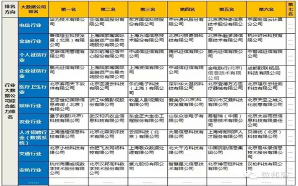2、2015中国大数据公司年度排名对外发布版含37个三级维度,185家大数据公司排名;