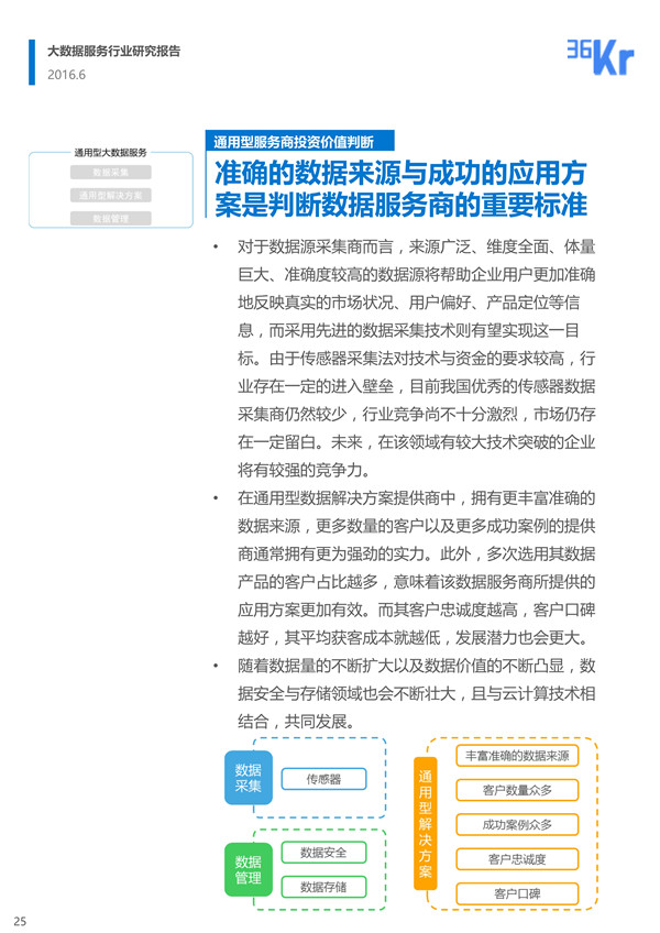 在通用型数据解决方案提供商中,拥有更丰富准确的数据来源、更多数量的客户、更高的客户忠诚度以及更多成功案例的提供商通常拥有更为强劲的实力。