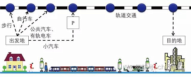 轨道交通作为城市客流主要通道的交通设施,具有多种交通方式换乘接驳的使用特征(见下图)。换乘接驳包括进站前和出站后,具有多种组合形式。中国城市轨道交通网络客流分析在接驳方式模型水平方面尚有较大地改进空间。建模的主要难点在于两端接驳的组合类型较多、需要考虑接驳的站间OD与交通小区OD客流分配的配套分析功能,以及获取支撑接驳模型参数标定的调查数据。