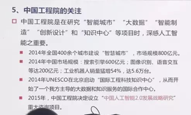中国工程院在长期的研究“智能城市、大数据、智能制造、创新设计、知识中心“等项目时,深感人工智能的重要性。