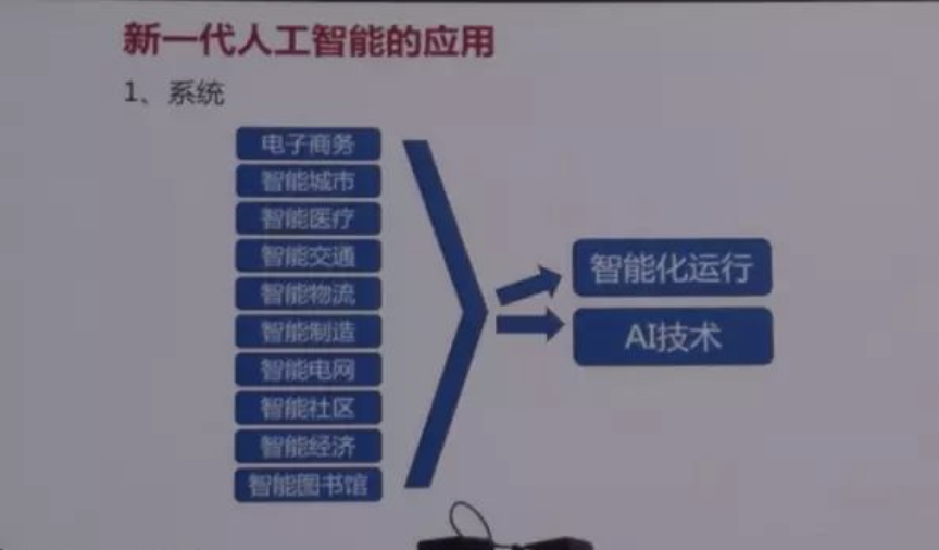 它可以和智能物流、智能制造、智能电网、智能社区、认识一个区域经济的智能化运行,包括智能图书馆,深入到学校,影响到智能化的学习,结合到一起所有这些都结合技术,是AI2.0解决相当大部分的这个系统的问题。另外它将产生很多新的AI的产品,我们看到的无人飞机、无人车、机器人,智能手机必将换代,智能游戏会有非常巨大的发展。尤其是当AI和AR结合起来的时候,AR也许比VR还要发生的更快,穿戴式设备,总的去向AI将和中国的信息化工业化的发展融合在一起。
