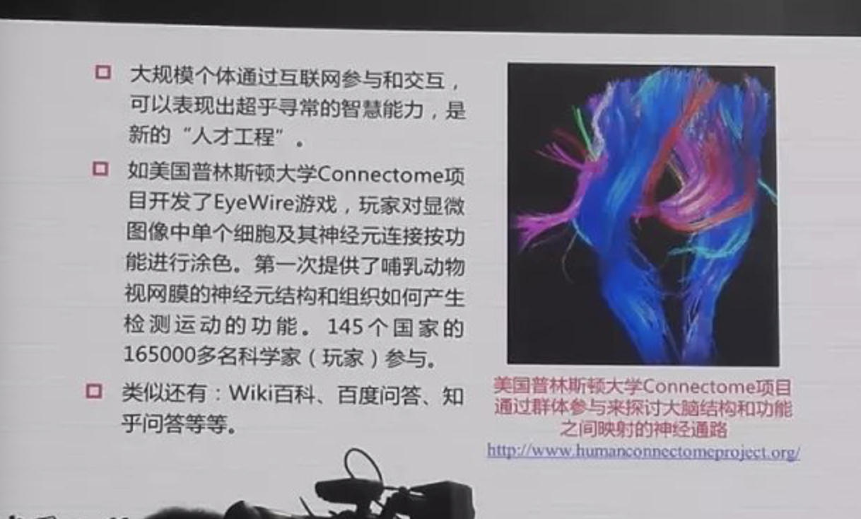 而且我们现在有了互联网,我们可以用网络,把很多很多的人和计算机组织在一起,这就是群体智能的概念。