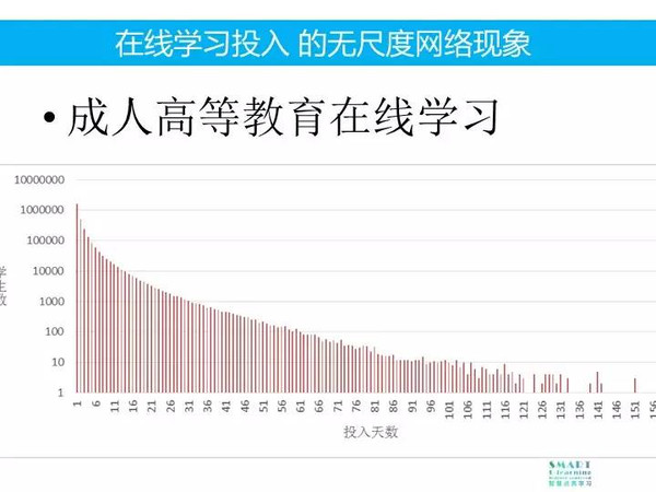我们来看成人高等教育在线学习就是这样一个无尺度网络曲线。学生人数的增加投入是越来越少。